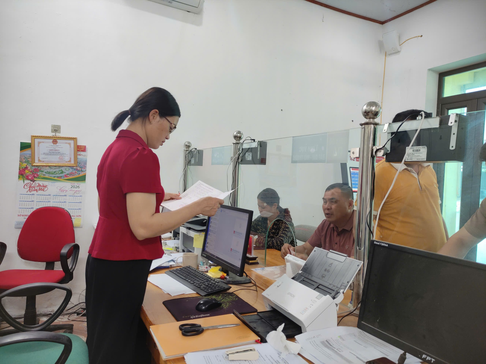 Cán bộ Trung tâm Phục vụ hành chính công xã hướng dẫn hồ sơ, tiếp nhận, giải quyết và trả kết quả cho người dân.