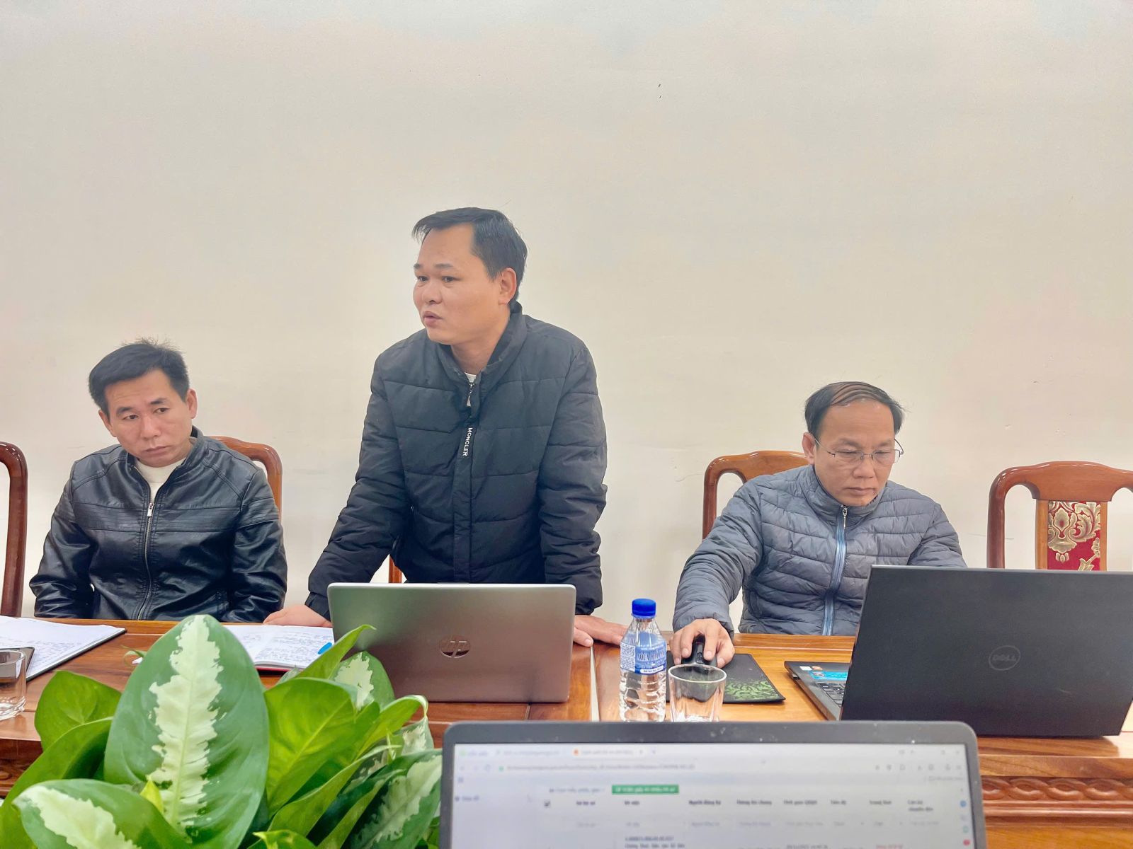 Đồng chí La Văn Bằng, Phó Chánh văn phòng HĐND và UBND xã thông qua báo cáo tại buổi làm việc