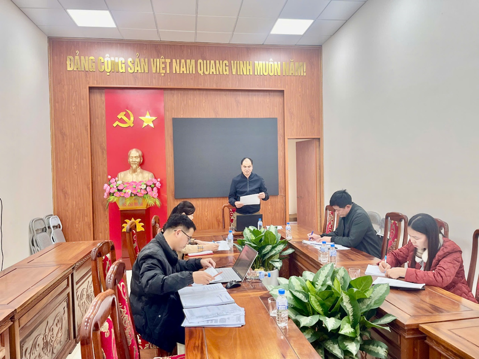 Hội đồng Nâng bậc lương trước thời hạn xã Thống Nhất họp xét nâng bậc lương trước thời hạn do lập thành tích xuất sắc trong thực hiện nhiệm vụ đối với cán bộ, công chức, viên chức và người lao động