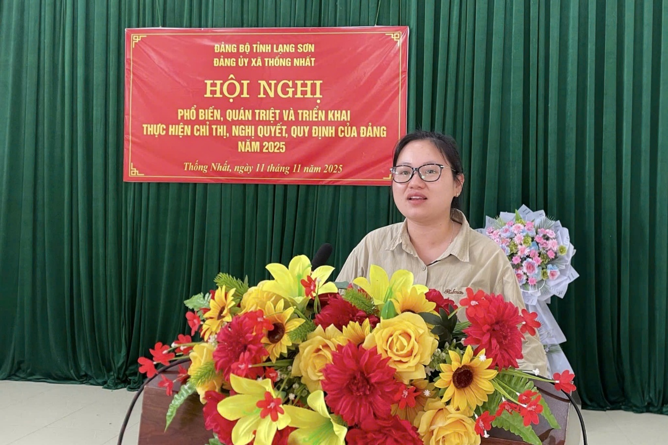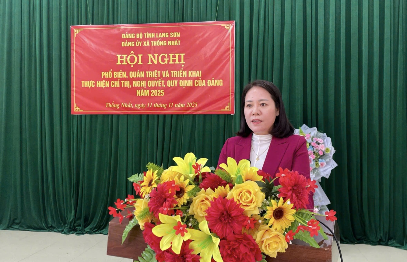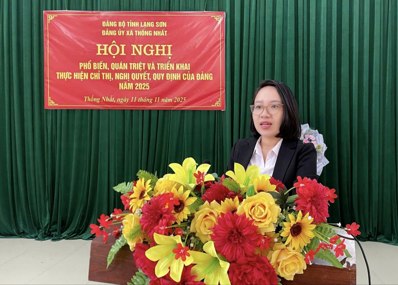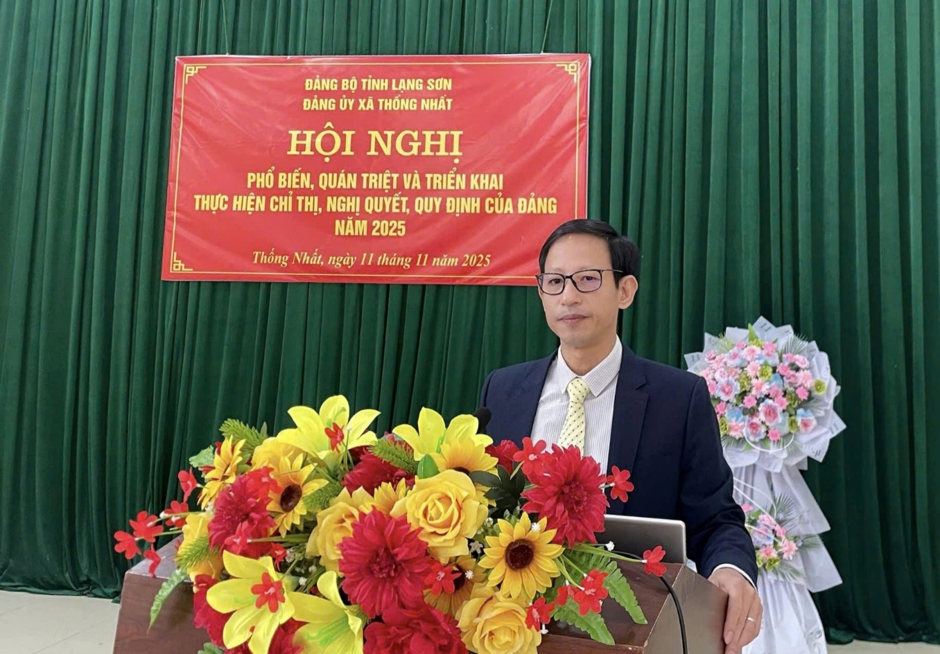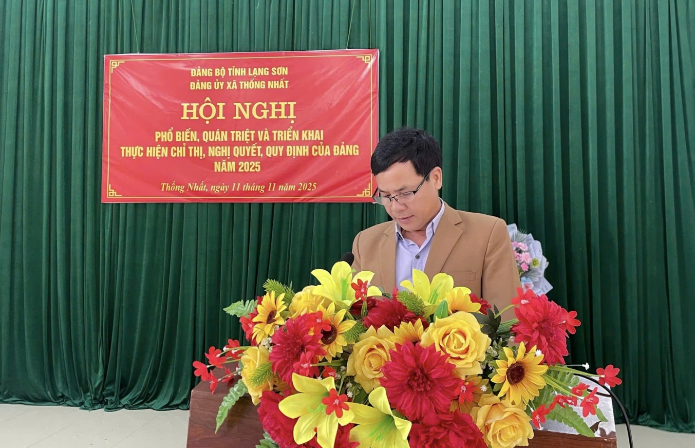 Ngày 11/11/2025, Đảng ủy xã Thống Nhất tổ chức Hội nghị phổ biến, quán triệt, triển khai thực hiện Nghị quyết số 57-NQ/TW, ngày 22/12/2024 của Bộ Chính trị về đột phá phát triển khoa học, công nghệ, đổi mới sáng tạo và chuyển đổi số quốc gia; Chỉ thị số 46-CT/TW, ngày 16/5/2025 của Bộ Chính trị về lãnh đạo cuộc bầu cử đại biểu Quốc hội khóa XVI và bầu cử đại biểu Hội đồng nhân dân các cấp, nhiệm kỳ 2026 – 2031 và Kế hoạch số 01-KH/TU, ngày 27/9/2025 của Ban Thường vụ Tỉnh ủy, Kế hoạch số 16-KH/ĐU ngày 09/10/2023 của Ban Thường vụ Đảng ủy xã về về thực hiện Chỉ thị số 46-CT/TW và các quy định về nghiệp vụ công tác Đảng.