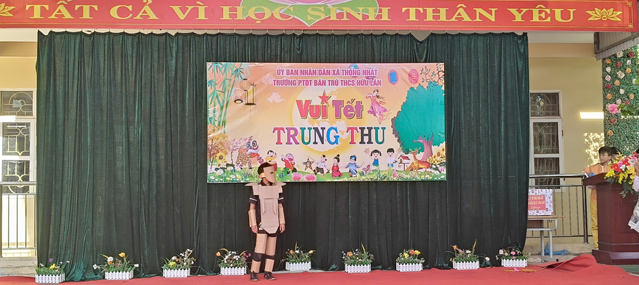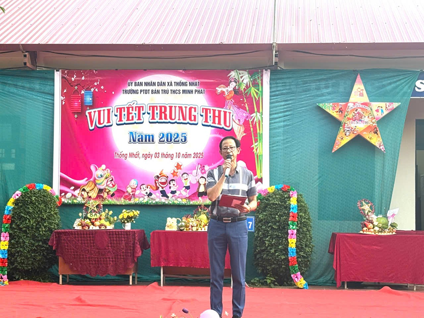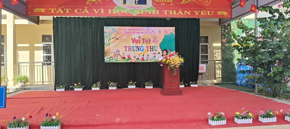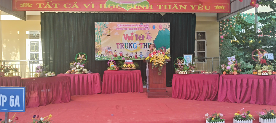 Bí thư chi bộ, Hiệu trưởng trường PT DT BTTHCS Hữu Lân phát biểu tại chương trình tết trung thu năm 2025