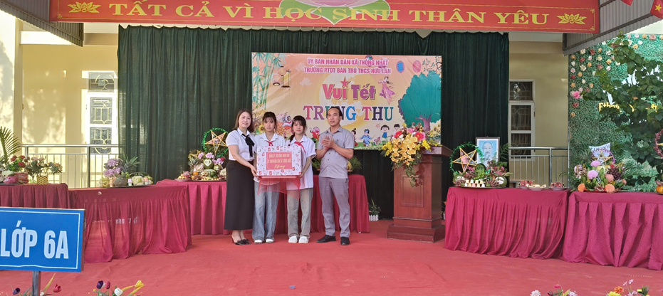 trao thưởng các phần thi cho các em học sinh trường PT DT BTTHCS Hữu Lân
