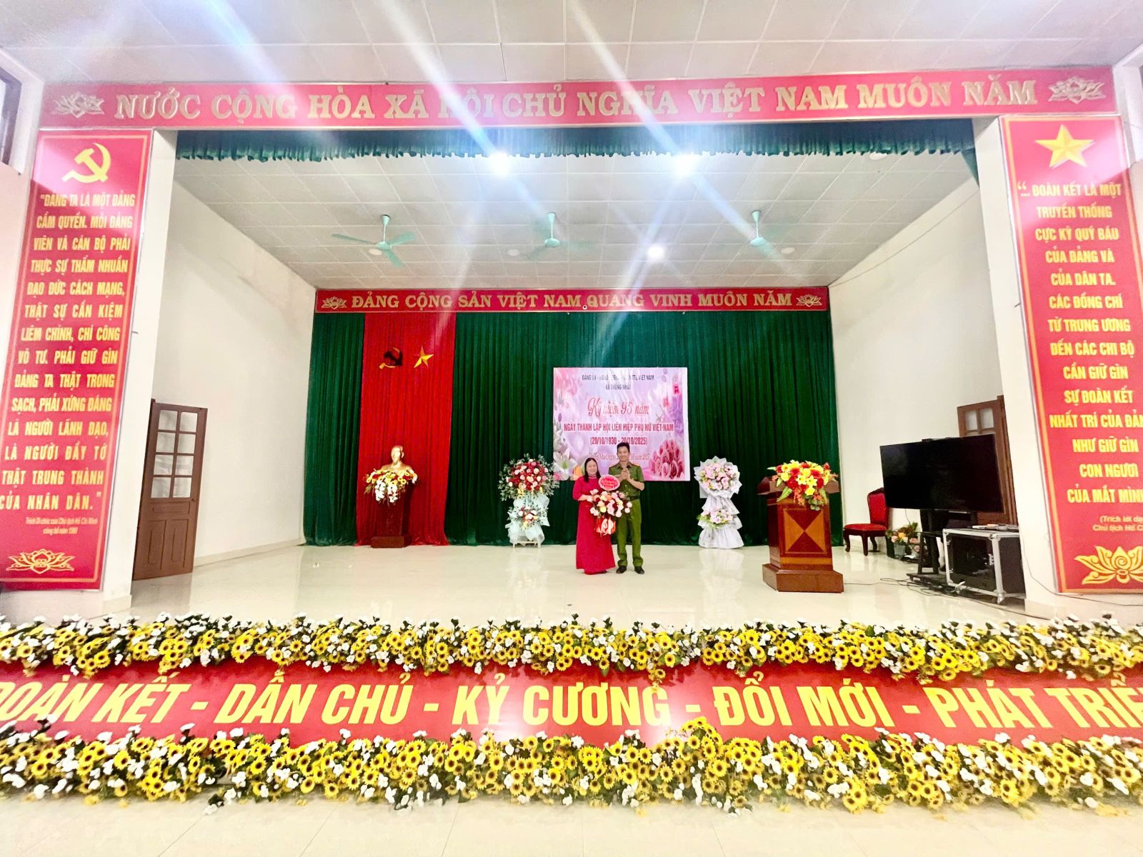 Lãnh đạo Công an xã tặng hoa chúc mừng