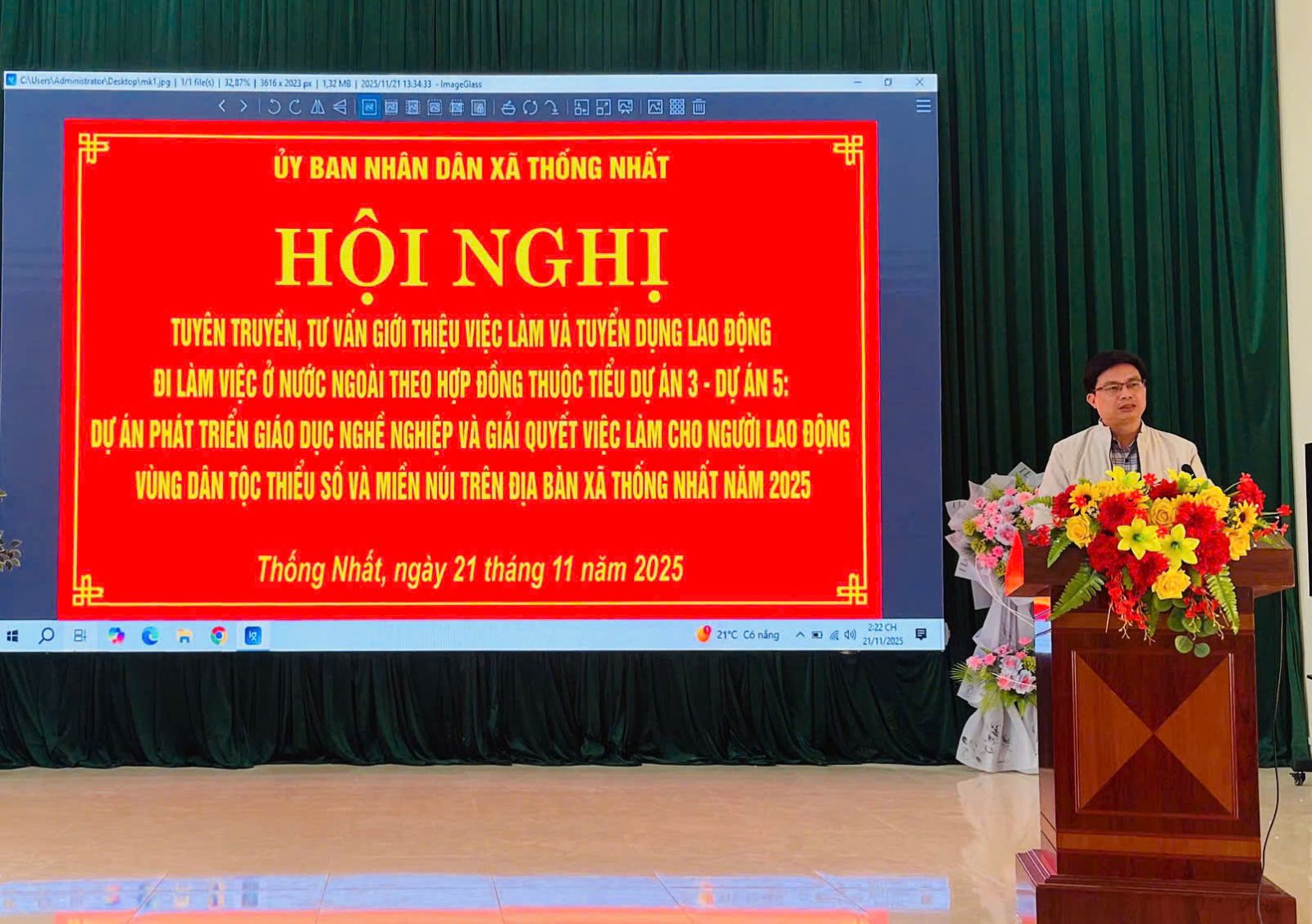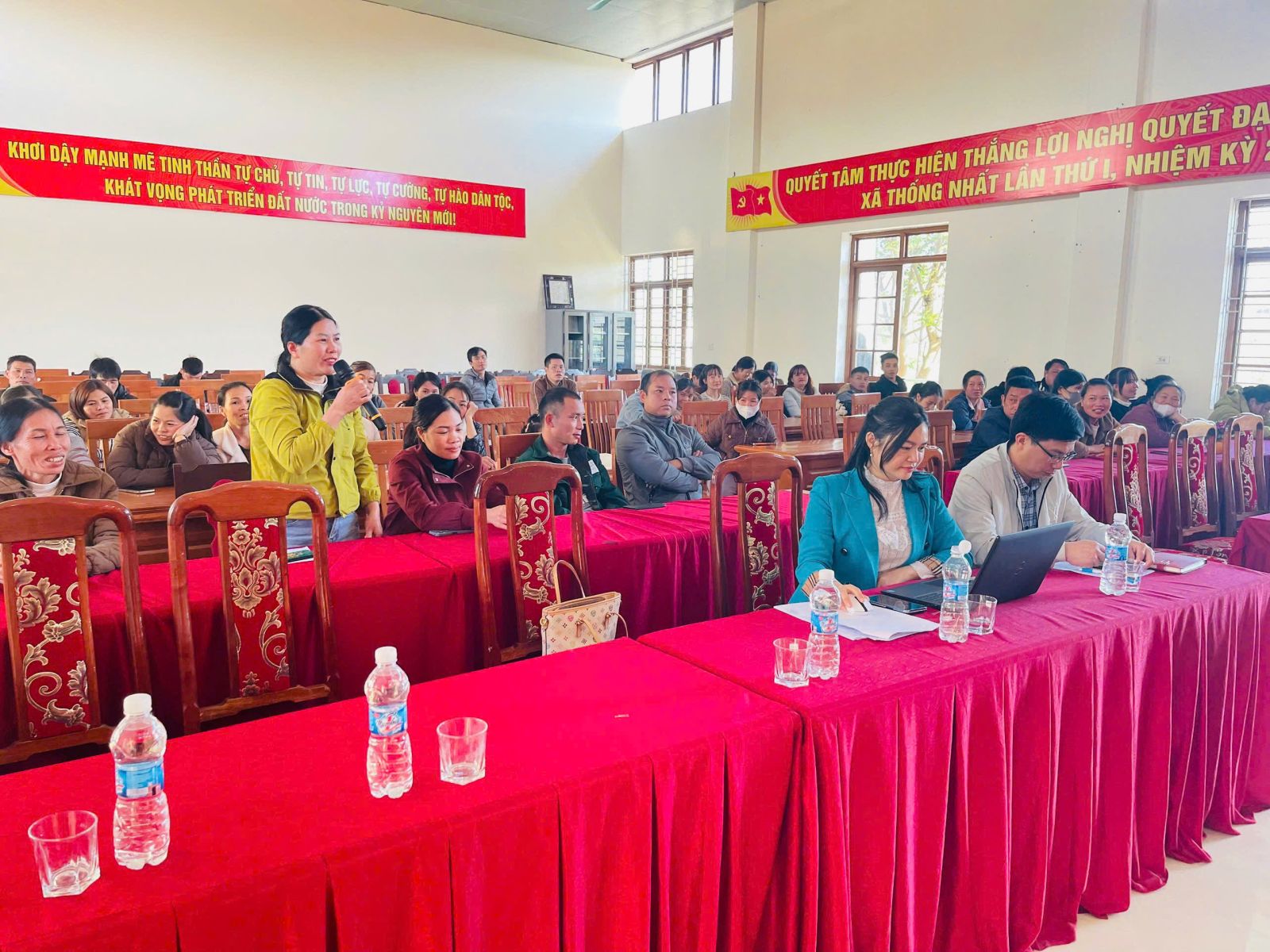 Hội nghị diễn ra trong không khí nghiêm túc, nhận được sự hưởng ứng tích cực từ người dân. Đây được xem là hoạt động thiết thực, tạo cơ hội mở rộng việc làm, nâng cao chất lượng nguồn lao động và thúc đẩy công tác giảm nghèo bền vững tại xã Thống Nhất.