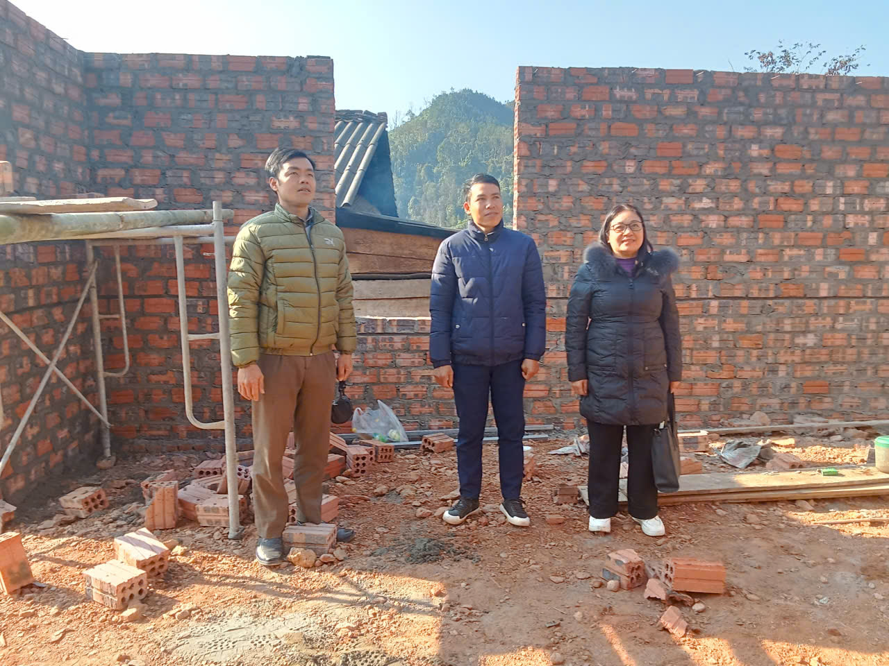 Tại các hộ gia đình được hỗ trợ kinh phí xây nhà mới và sửa chữa, đồng chí phó chủ tịch HĐND xã thay mặt đoàn đã ân cần thăm hỏi và động viên các hộ gia đình và các thợ xây đang thi công, cố gắng hoàn thành các hạng mục với thời gian sớm nhất, đảm bảo cho các hộ gia đình có nhà mới đón xuân Bính ngọ 2026.