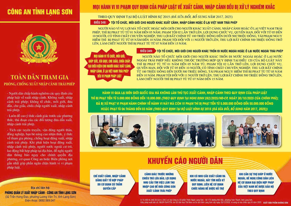 Tờ rơi kêu gọi Toàn dân tham gia Phòng, chống xuất nhập cảnh trái phép của Công an tỉnh Lạng Sơn |
