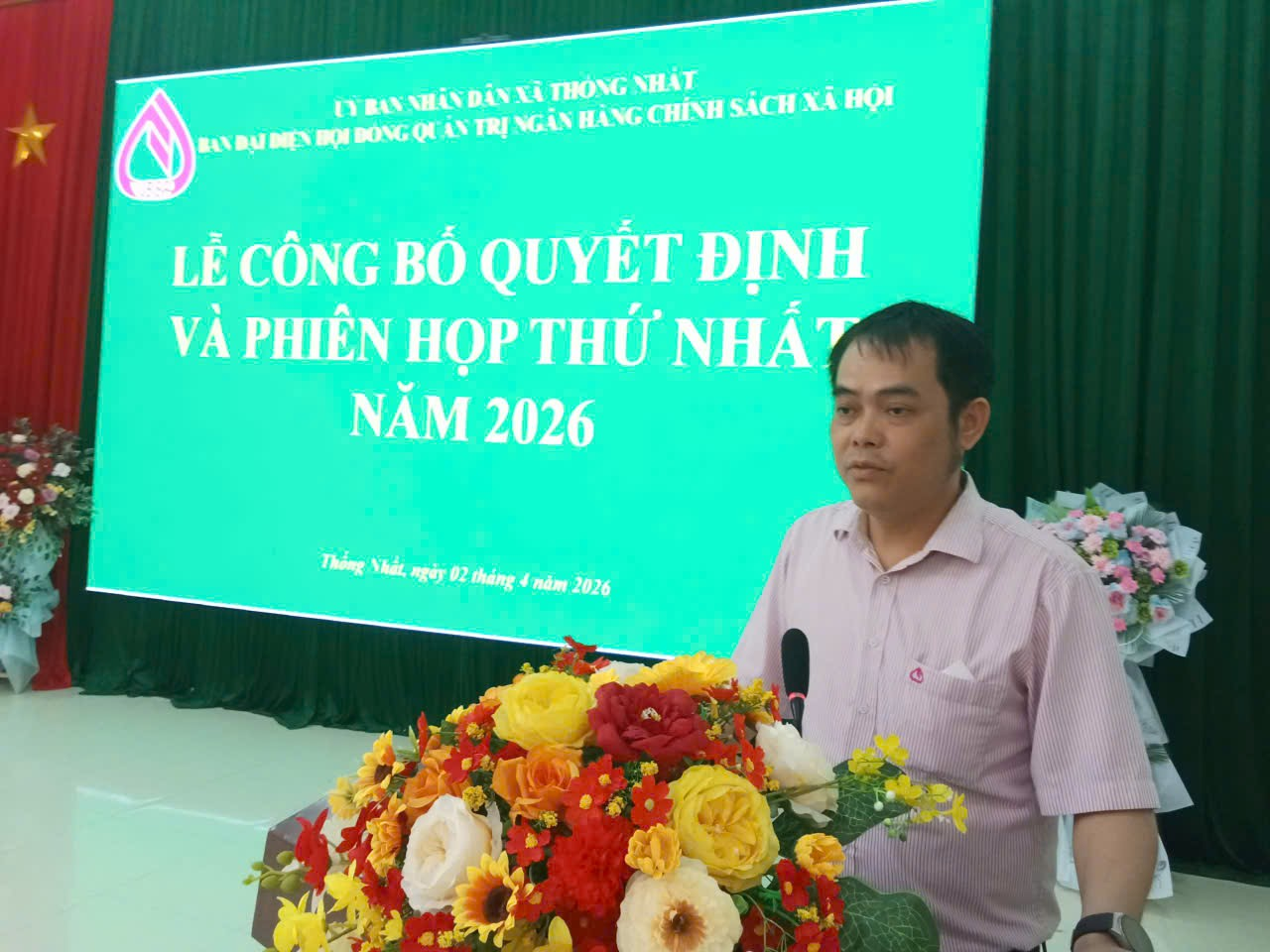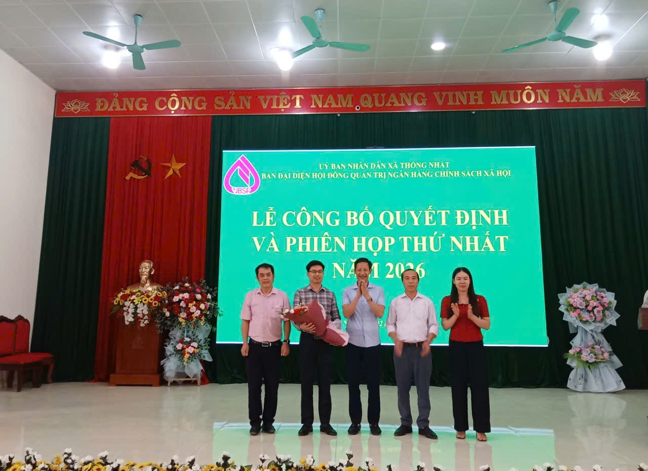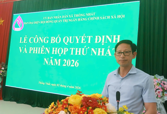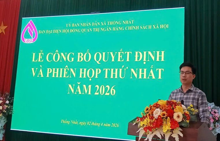 Ngày 02/4/2026, Ban đại diện HĐQT NHCSXH xã Thống Nhất tổ chức phiên họp thứ nhất. Dự có đồng chí Đặng Trần Ánh, Phó Bí thư Thường trực Đảng ủy xã; đồng chí Vi Văn Thắng, Phó Bí thư Đảng ủy, Chủ tịch UBND xã, Trưởng Ban đại diện Hội đồng quản trị ngân hàng chính sách xã hội xã Thống Nhất; đại diện lãnh đạo UBMTTQ Việt Nam xã, Phòng Kinh tế xã, Phòng Văn hóa - Xã hội xã, Văn phòng HĐND&UBND xã, Trung tâm Hành chính công xã, Trung tâm Dịch vụ công ích xã, đại diện lãnh đạo các tổ chức chính trị - xã hội xã, Phòng giao dịch NHCSXH Lộc Bình.