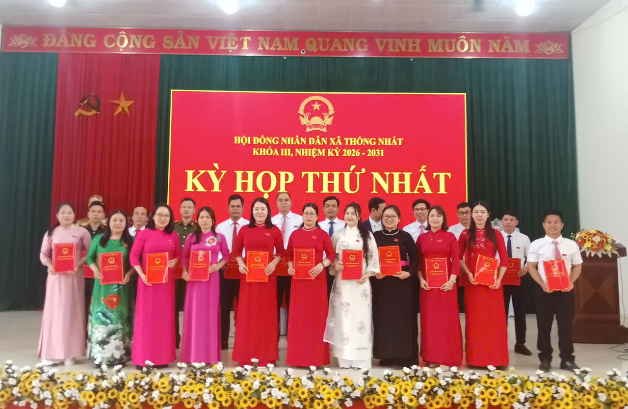 Với tinh thần đoàn kết, dân chủ, kỷ cương và đổi mới, Kỳ họp thứ Nhất Hội đồng nhân dân xã Thống Nhất nhiệm kỳ 2026 - 2031 đã thành công tốt đẹp, tạo tiền đề vững chắc cho việc thực hiện thắng lợi các mục tiêu, nhiệm vụ trong cả nhiệm kỳ.