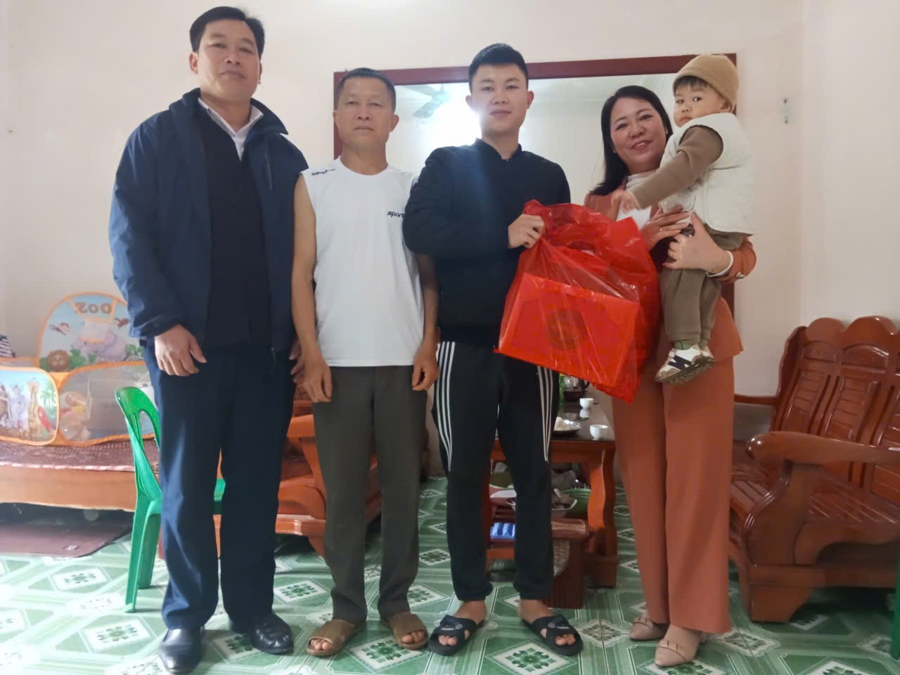Nhân dịp năm mới sắp đến đồng chí Lý Thị Thuỷ - Bí thư Đảng uỷ, Chủ tịch HĐND xã, tặng một suất quà tết cho tân binh Dương Trung Hiếu. Tuy phần quà giá trị không lớn nhưng thể hiện sự quan tâm, trách nhiệm của cấp ủy, chính quyền đối với công tác tuyển chọn, gọi công dân nhập ngũ, góp phần động viên tinh thần để các thanh niên vững tin, phấn khởi lên đường làm nhiệm vụ bảo vệ Tổ quốc.