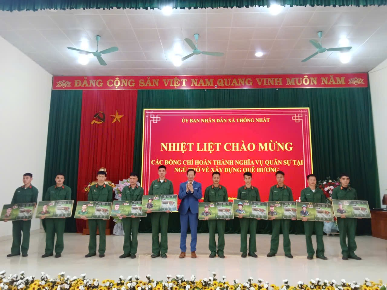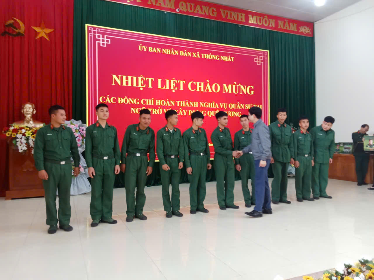 Nhân dịp này, các đồng chí lãnh đạo xã Thống Nhất đã trao quà chúc mừng các quân nhân hoàn thành nghĩa vụ quân sự trở về địa phương. Đây là hoạt động ý nghĩa, thể hiện sự quan tâm của các cấp uỷ, chính quyền đối với công tác hậu phương quân đội.