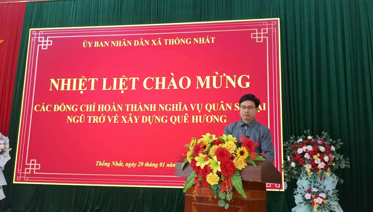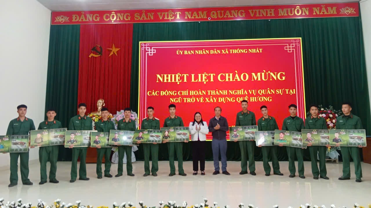 Sáng ngày 29/01/2026,UBND xã Thống Nhất tổ chức đón quân nhân hoàn thành nghĩa vụ quân sự trở về địa phương năm 2026. Tới dự có đồng chí Đặng Trần Ánh, Phó Bí thư Thường trực Đảng ủy xã; Đồng chí Đồng chí Vi Văn Thắng, Phó Bí thư Đảng uỷ, Chủ tịch UBND xã; Hoàng Thị Hương, Phó chủ tịch HĐND xã; đồng chí Ủy viên Ban thường vụ Đảng ủy; Các đồng chí đại diện lãnh đạo UBND xã; Lãnh đạo UB MTTQ Việt Nam xã; Các tổ chức Chính trị - Xã hội xã; Lãnh đạo các phòng chuyên môn, Công an xã; Ban chỉ huy Quân sự xã; các quân nhân xuất ngũ và đại diện gia đình quân nhân.
