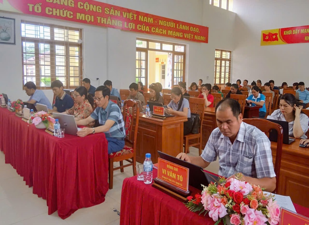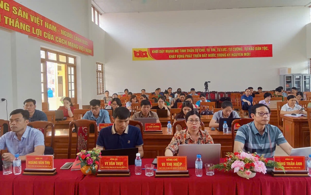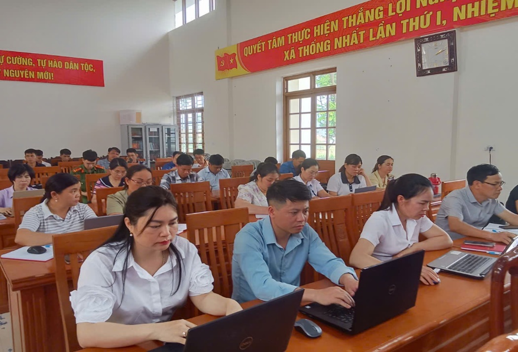 Các đại biểu tham dự hội nghị tại điểm cầu xã Thống Nhất