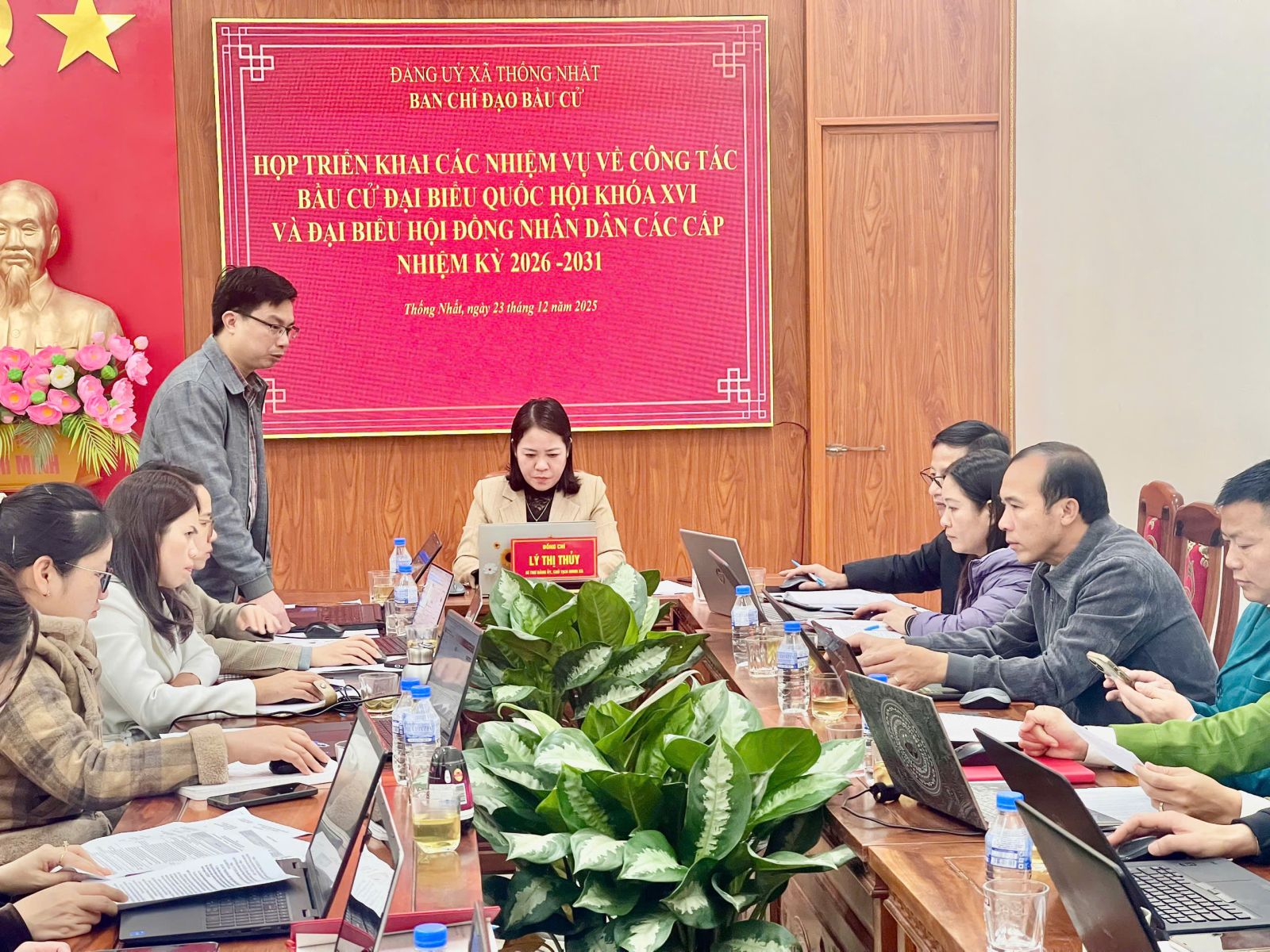 Cuộc họp do đồng chí Lý Thị Thủy – Bí thư Đảng ủy, Chủ tịch HĐND xã, Trưởng Ban Chỉ đạo bầu cử xã Thống Nhất chủ trì. Tham dự cuộc họp có các đồng chí trong Thường trực Đảng ủy, HĐND, UBND xã; thành viên Ban Chỉ đạo bầu cử xã; đại diện Ủy ban MTTQ Việt Nam xã và các ban, ngành, đoàn thể liên quan.