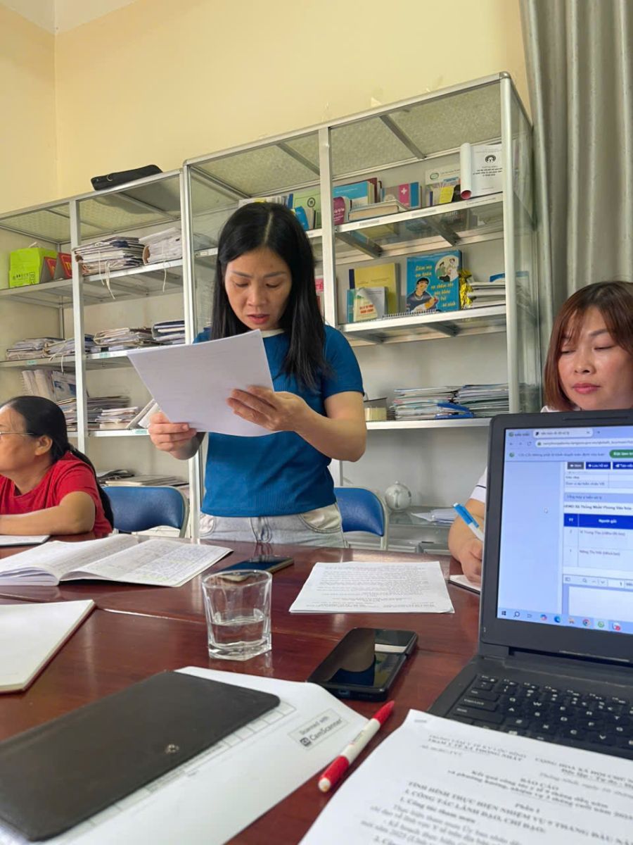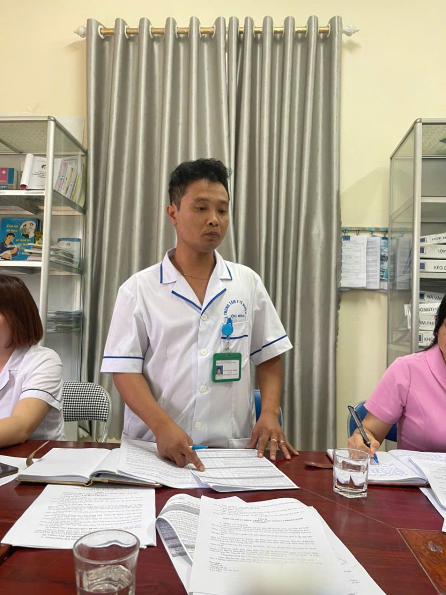 Đại diện trạm y tế xã trình bày báo cáo