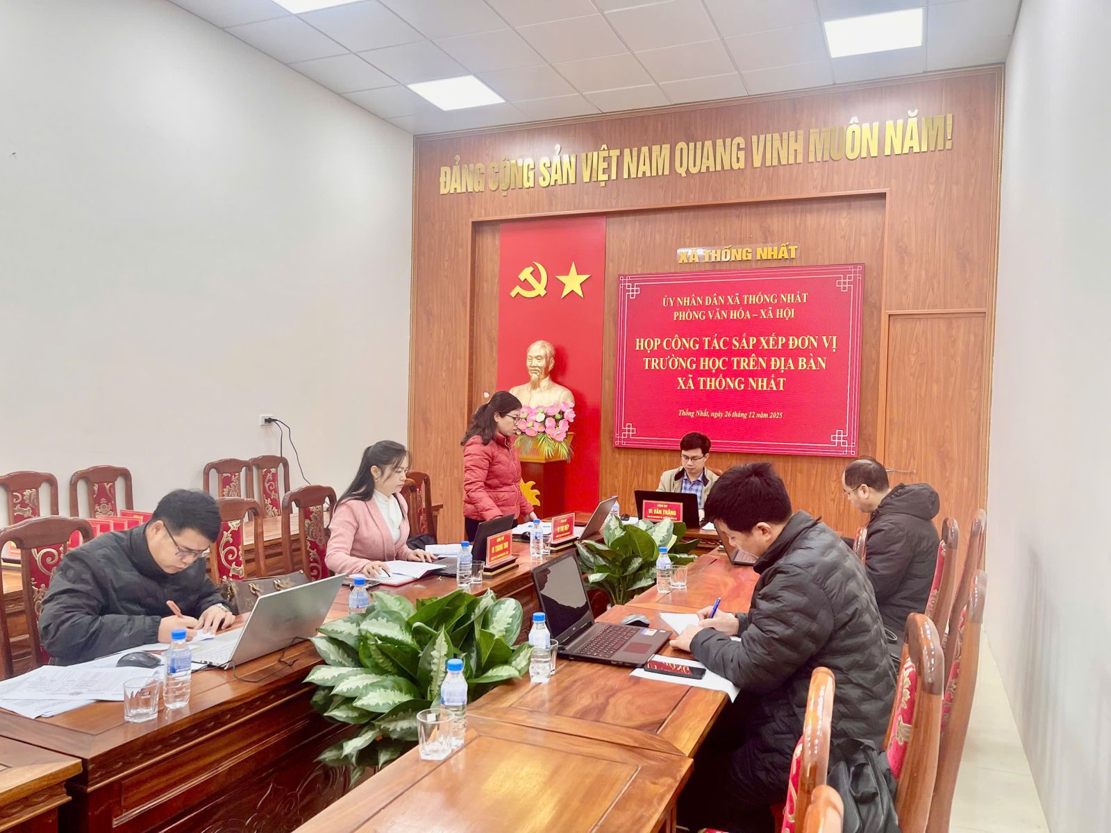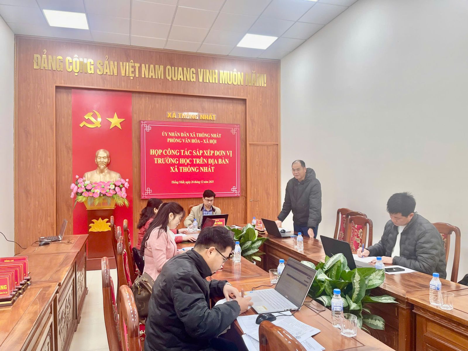 Sáng ngày 26/12/2025, tại Hội trường tầng 1 Đảng ủy – UBND xã Thống Nhất, UBND xã đã tổ chức cuộc họp về công tác sắp xếp các đơn vị trường học trên địa bàn xã.