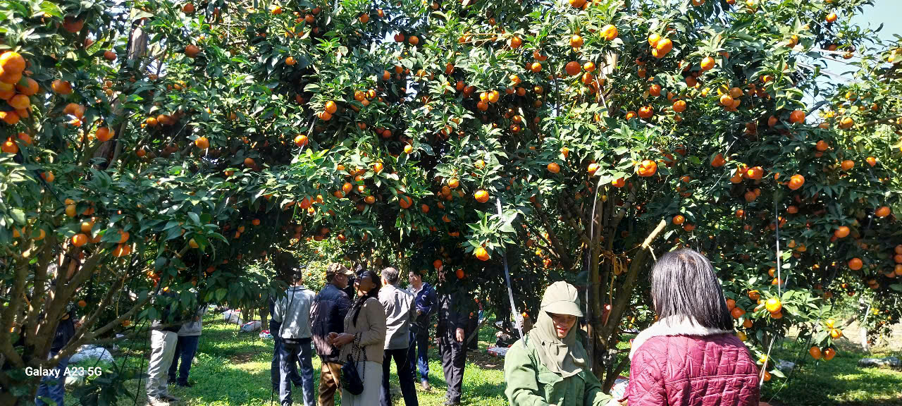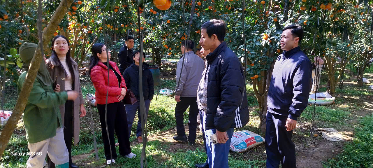 Tiếp đó Đoàn công tác đến thăm và làm việc, trao đổi kinh nghiệm tại mô hình trồng Cam đường canh, Quýt sản xuất, tiêu thụ sản phẩm tại vườn cây cam thôn Trí Yên, xã Bắc Sơn.