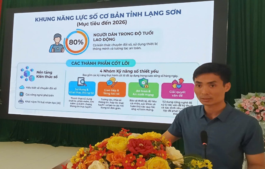 Tại Hội nghị, các đại biểu đã được nghe các báo cáo viên: Trung tâm Công nghệ số (Sở Khoa học và Công nghệ) giới thiệu khung kỹ năng số cơ bản dành cho người dân; đại diện Công an tỉnh hướng dẫn cài đặt và sử dụng tài khoản định danh điện tử VneID, kỹ năng bảo đảm an toàn thông tin, nhận diện và phòng tránh lừa đảo trên không gian mạng. Đồng thời, cán bộ VNPT Lạng Sơn và các ngân hàng thương mại trên địa bàn cũng phổ biến cách sử dụng dịch vụ công trực tuyến, một số ứng dụng công nghệ số phục vụ học tập, sản xuất, cùng quy trình cài đặt, đăng ký sử dụng tài khoản thanh toán điện tử, các ứng dụng ngân hàng số, ví điện tử trong giao dịch hằng ngày.