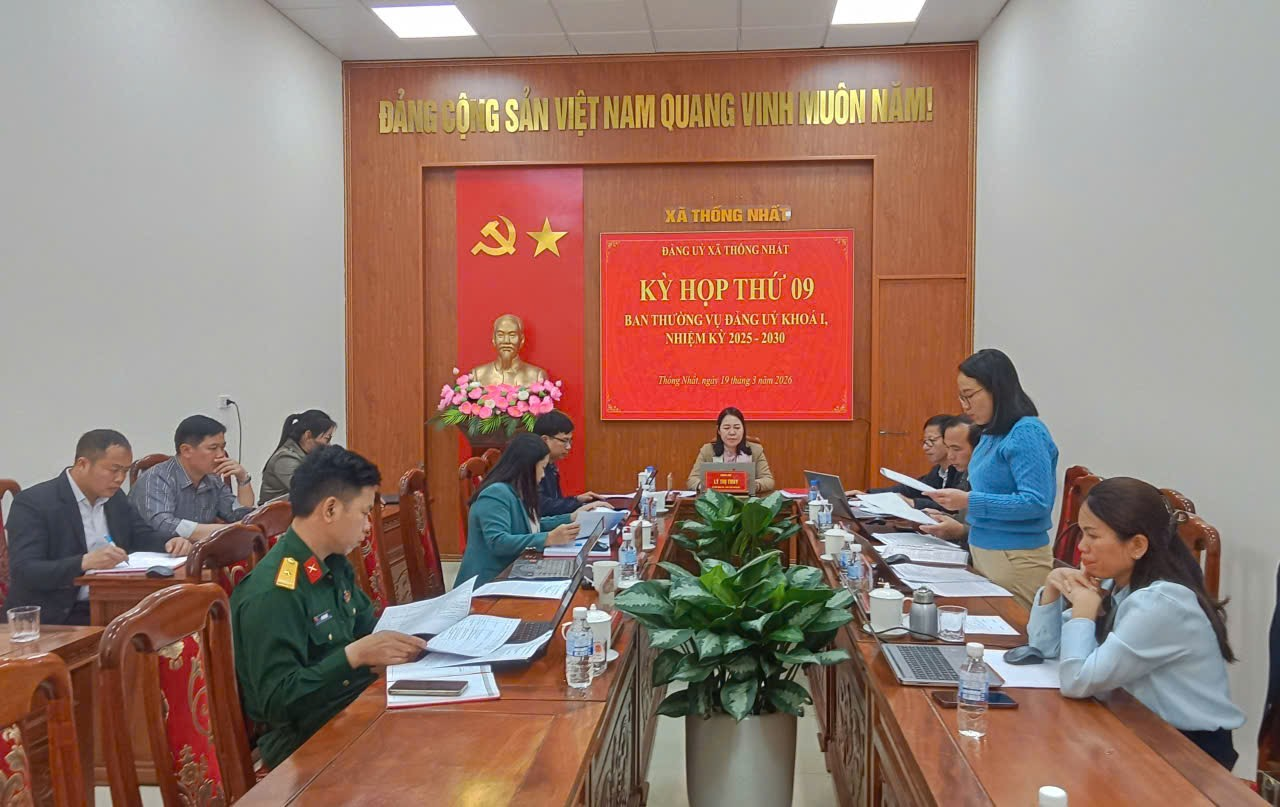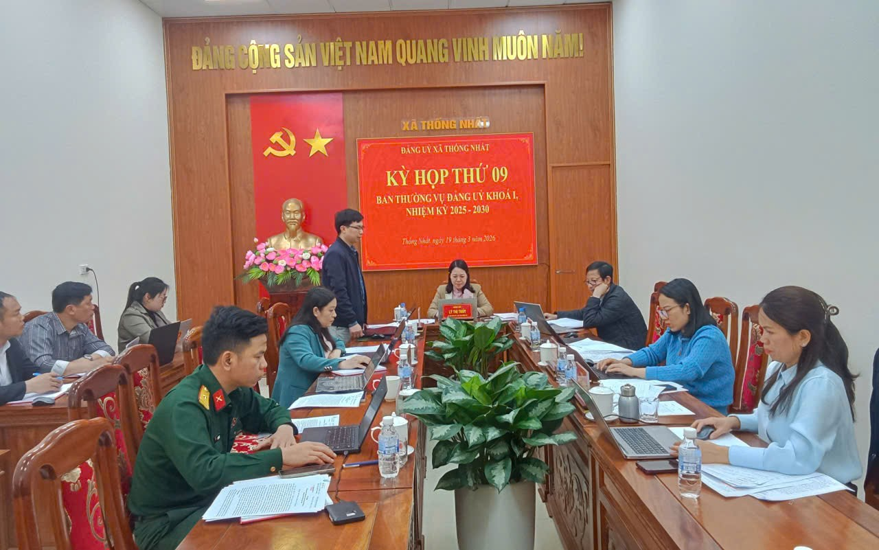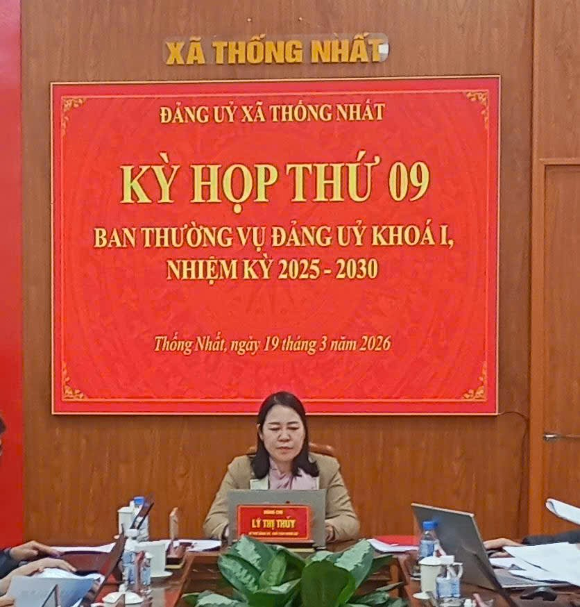 Ngày 19/03/2026, đồng chí Lý Thị Thuỷ, Bí thư Đảng ủy, Chủ tịch HĐND xã Thống Nhất chủ trì Hội nghị Ban Thường vụ Đảng ủy xã khóa I, nhiệm kỳ 2025 - 2030. Tham dự kỳ họp có các đồng chí trong Ban Thường vụ Đảng ủy xã, cùng đại diện một số bộ phận chuyên môn liên quan.