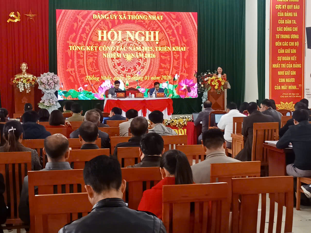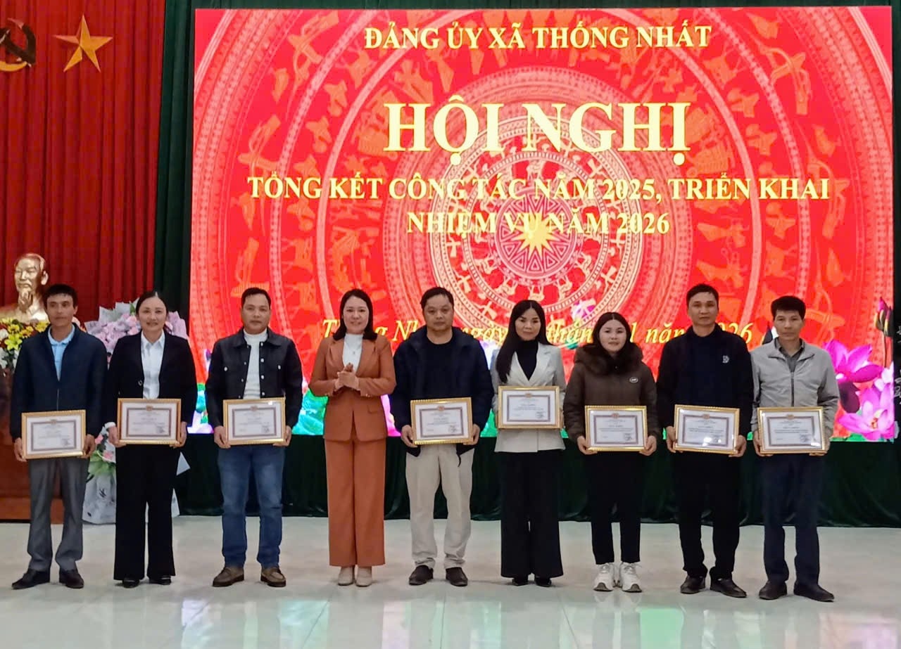 Ngày 29/1/2026, Đảng ủy - HĐND - UBND xã Thống Nhất tổ chức Hội nghị tổng kết công tác Đảng, chính quyền năm 2025, triển khai nhiệm vụ năm 2026. Dự và chỉ đạo hội nghị đồng chí Lý Thị Thuỷ, Bí thư Đảng ủy, Chủ tịch HĐND xã Thống Nhất. Dự có đồng chí Đặng Trần Ánh, Phó Bí thư Thường trực Đảng uỷ; Đồng chí Vi Văn Thắng, Phó Bí thư Đảng uỷ, Chủ tịch UBND xã , các đồng chí Thường trực Đảng ủy, HĐND, lãnh đạo UBND xã: Ủy ban MTTQ Việt Nam xã, lãnh đạo các ban, ngành, đoàn thể, Bí thư chi bộ, trưởng thôn và các tập thể, cá nhân tiêu biểu trên địa bàn.