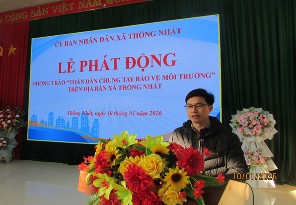 Thực hiện Chỉ thị số 12/CT-UBND ngày 13/12/2025 của UBND tỉnh Lạng Sơn về việc tăng cường công tác vệ sinh môi trường trên địa bàn tỉnh Lạng Sơn. Sáng ngày 10/01/2026, tại UBND xã Thống Nhất tổ chức Lễ phát động “Toàn dân tham gia bảo vệ môi trường”. Tham dự có Thường trực Đảng ủy, Thường trực HĐND xã; Chủ tịch, các Phó Chủ tịch UBND xã; Các đồng chí ủy viên Ban Chấp hành đảng bộ xã; Chủ tịch Ủy ban MTTQ Việt Nam xã; Đại diện các cơ quan, đơn vị và 36/36 thôn trên địa bàn và toàn thể cán bộ, công chức xã Thống Nhất.