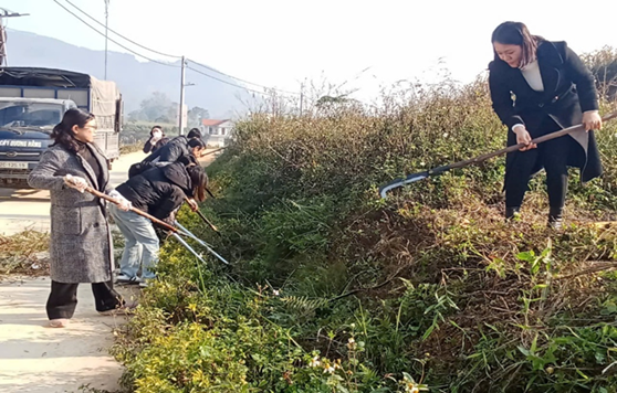 Lãnh đạo Đảng uỷ, HĐND và UBND, MTTQVN xã cùng toàn thể công chức, viên chức xã đồng loạt ra quân phát quang, thu gom rác xung quanh cơ quan và các trụ đường thôn.
