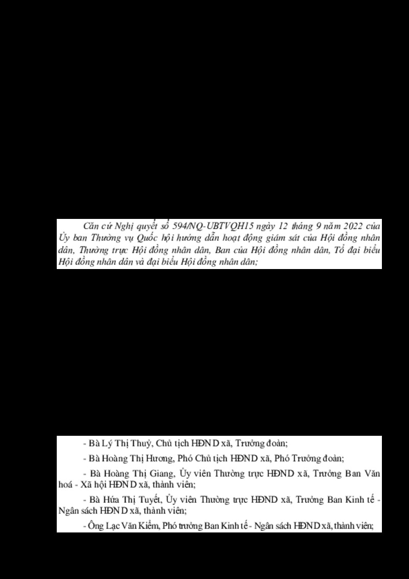 | Tiêu đề văn bản | NGHỊ QUYẾT Thành lập Đoàn giám sát chuyên đề của Hội đồng nhân dân xã giám sát về công tác tổ chức bộ máy, sử dụng viên chức trên địa bàn xã | ||