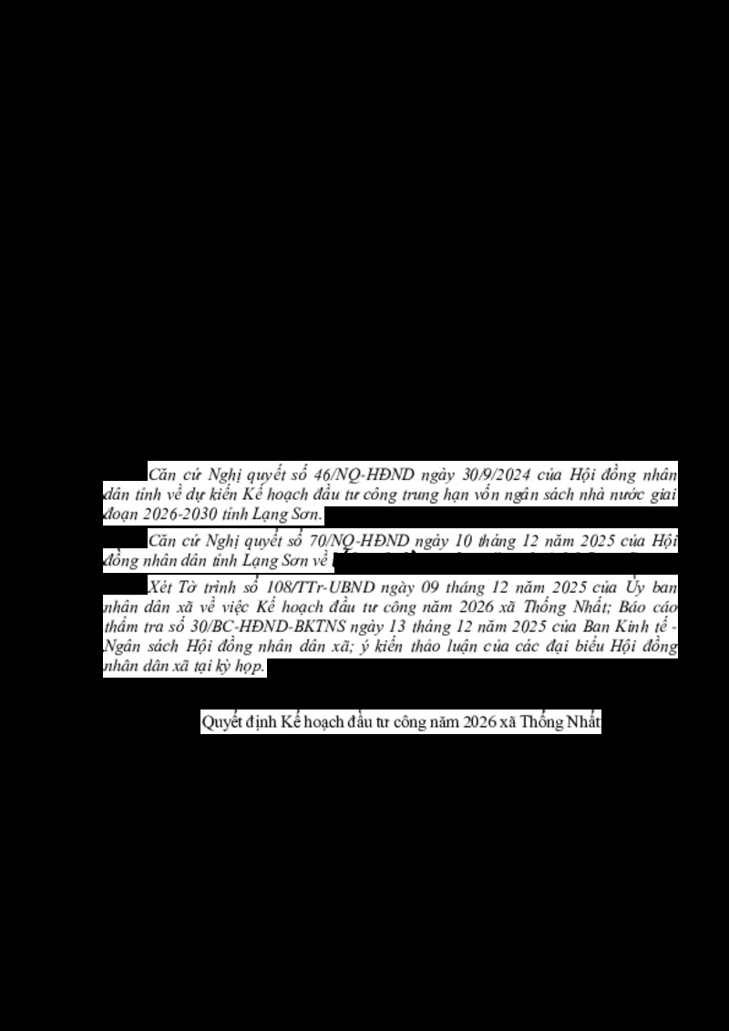 Tiêu đề văn bản NGHỊ QUYẾT Về Kế hoạch đầu tư công năm 2026 xã Thống Nhất