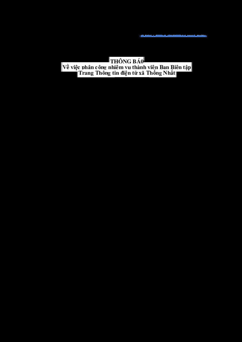 | Tiêu đề văn bản | THÔNG BÁ0 Về việc phân công nhiệm vụ thành viên Ban Biên tập Trang Thông tin điện tử xã Thống Nhất | ||